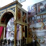 Il Santuario della Madonna delle Grazie di Pennabilli è in assoluto il più antico santuario della diocesi di Pesaro-Urbino. In esso si venera un affresco quattrocentesco della Madonna in trono col Bambino, invocata come Madonna delle Grazie. Il 16 novembre dei 1432 fu trovata un’iscrizione che riportava l’anno 1222, data della prima consacrazione dell’edificio, in origine dedicato a san Cristoforo. L’antico edificio era una piccola cappella di forme gotiche, con un’unica aula e presbiterio appena rialzato. Sulla parete di fondo era dipinto l’affresco con l’immagine della Madonna che divenne oggetto di grande venerazione dopo che il terzo venerdì di marzo del 1489 la Madonna fu vista versare lacrime. Quella data è divenuta giorno di festa, e anche oggi è ricordata con una solenne cerimonia. Nel 1522 l’edificio venne ampliato nelle forme attuali su decisione del padre agostiniano Nicola di Pennabilli, che affidò al maestro Francesco di Cesare, cittadino riminese, il compito di riedificare la chiesa. Nel 1528, a conclusione dei lavori di ampliamento, l’affresco venne impreziosito da una bellissima tribuna in marmo, sorretta da due colonne con capitelli dorati, e una ricca decorazione ad affresco. Nel 1889 la chiesa fu rivestita con un soffitto a cassettoni in gesso. Fra le diverse tele che abbelliscono il tempio merita particolare attenzione la prima a destra, buona copia del dipinto con la Deposizione di Cristo dalla Croce eseguito da Federico Barocci per la cattedrale di Perugia.