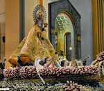 Nel 1593, alla morte di suo padre, governatore spagnolo delle Filippine, il capitano Hernando de los Rios Coronel, volendo imprimere un’impronta religiosa al suo governo, commissiona ad un’artista non-cristiano cinese che, al termine della sua opera si convertirà, una statua della Vergine. Essa fu scolpita su legno duro, impreziosita da parti in avorio, e riproduce, nelle fattezze oriental-filippine, la Vergine con Bambino, che regge uno scettro e la corona del rosario. Questa immagine di Nuestra Señora de La Naval, è la più amata dai cattolici filippini, riepilogandone la storia della loro identità cristiana. L’intercessione della Madonna del Santo Rosario di La Naval, infatti, ha aiutato nel corso dei secoli, il popolo filippino a preservare la sua identità cattolica, come avvenne nel 1646, quando musulmani del Sud e olandesi calvinisti tentarono di conquistare alcune isole dell’Arcipelago filippino. Questa protezione della Vergine, per l’integrità della terra filippina e per la preservazione della sua identità storica e religiosa, viene ricordata e celebrata ogni anno e ricevette il suo suggello nel 1952 con la costruzione di un nuovo grande santuario nazionale e la proclamazione nel 1954 della Madonna di La Naval a speciale patrona di Manila, capitale delle Isole Filippine. La statua è ricoperta di gioielli, donati da innumerevoli fedeli attraverso i secoli e narrano una lunga storia di fede, di grazie, di amore e di attaccamento incondizionato del popolo filippino a Maria.